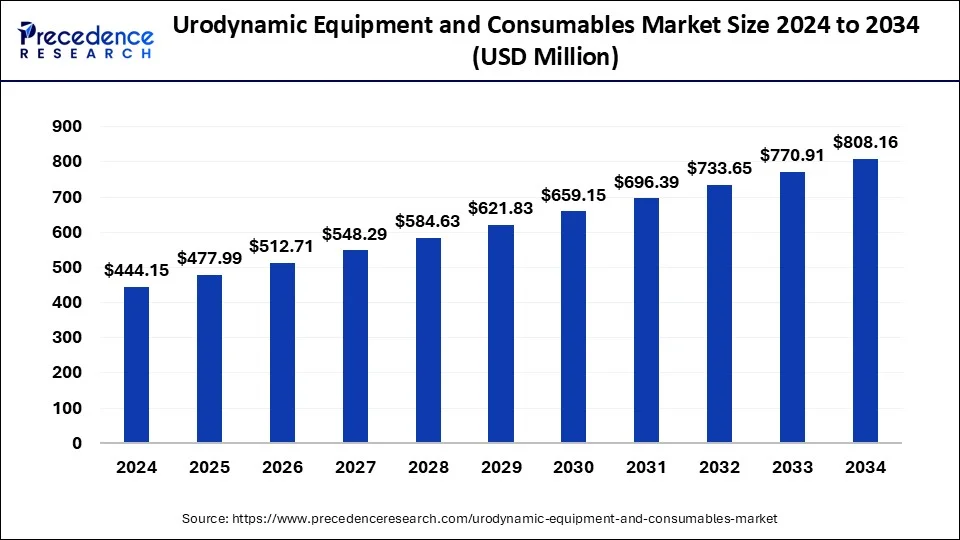 Ottawa, Nov. 21, 2025 (GLOBE NEWSWIRE) -- According to Precedence Research, the global urodynamic equipment and consumables market size will grow from USD 477.99 million in 2025 to nearly USD 808.16 million by 2034, with an expected CAGR of 6% from 2025 to 2034. The market is driven by the rising prevalence of urinary disorders and the increasing adoption of advanced diagnostic technologies.
